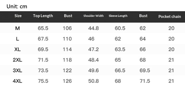 Sizes: M, L, XL, XXL, XXXL, 4XL